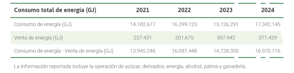 Los valores reportados en años anteriores se ajustan por inclusión de los consolidados de todas las operaciones. Destacamos que al cierre del año 2024 el 96% de la energía necesaria para nuestras operaciones proviene de fuentes renovables.